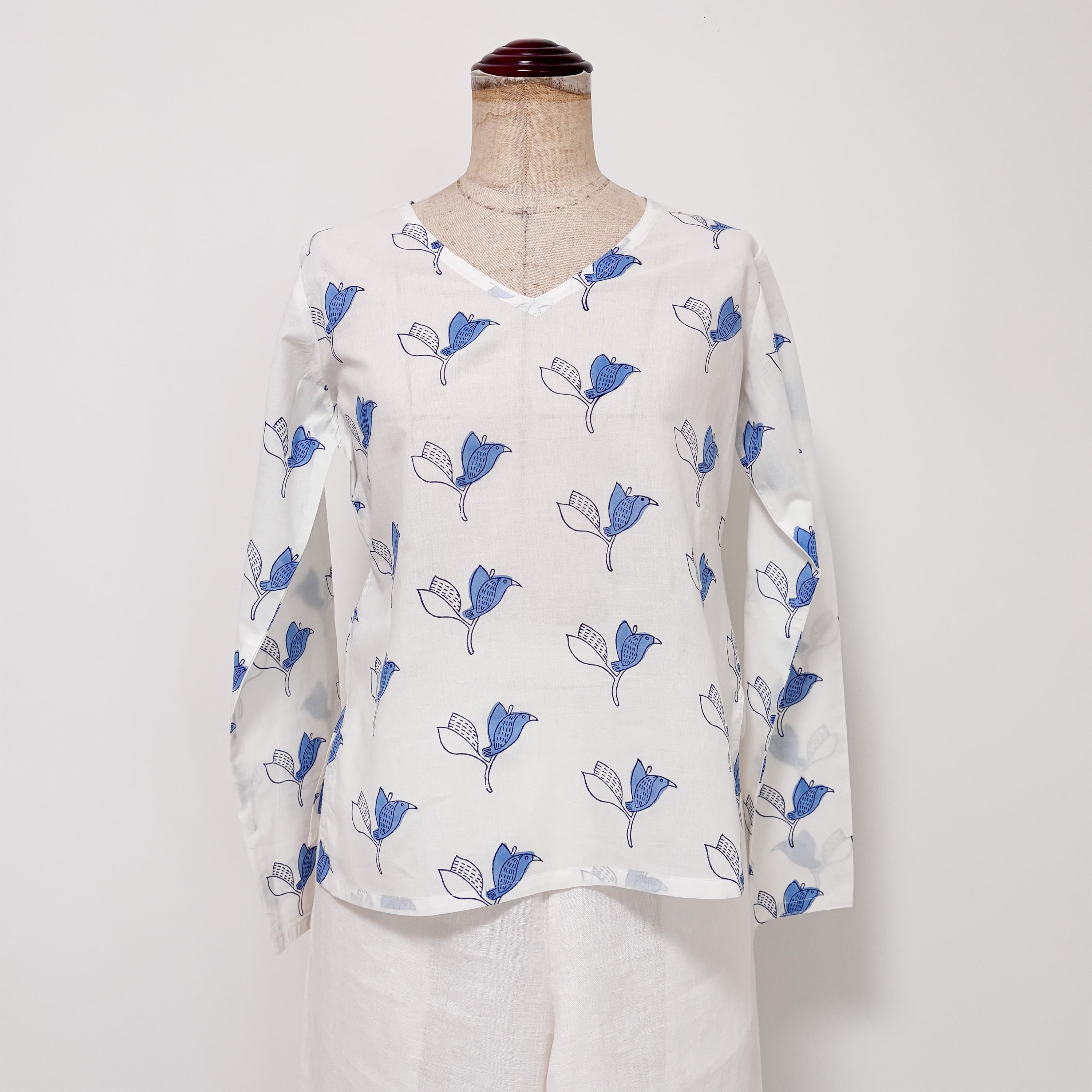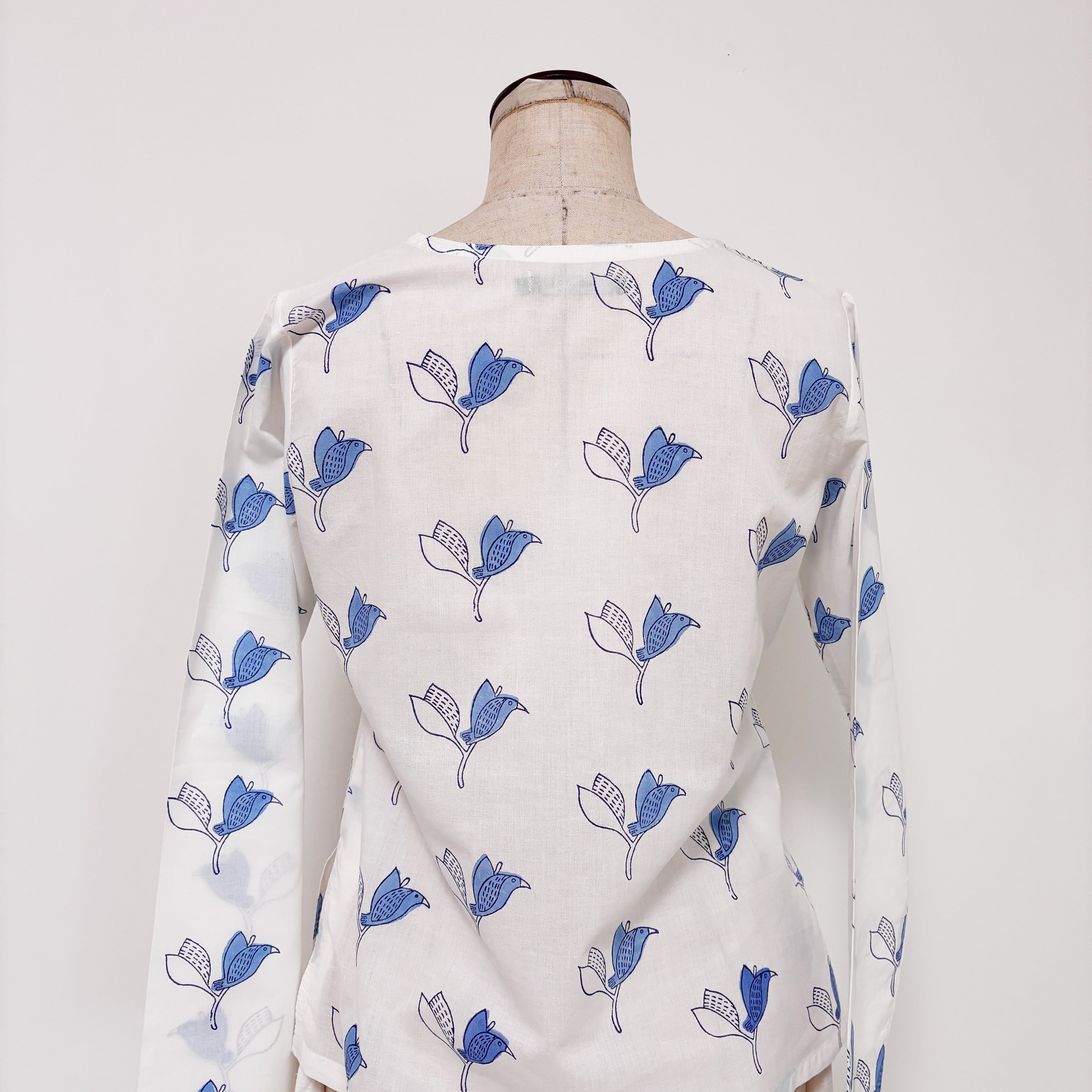 着心地の良いインド綿100%の生地に、インド先住民、コンド族の絵をモチーフにした木版ブロックプリントを施しました。