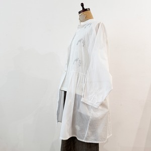 このチュニックには、銀色の糸で小鳥たちが刺繍されています。