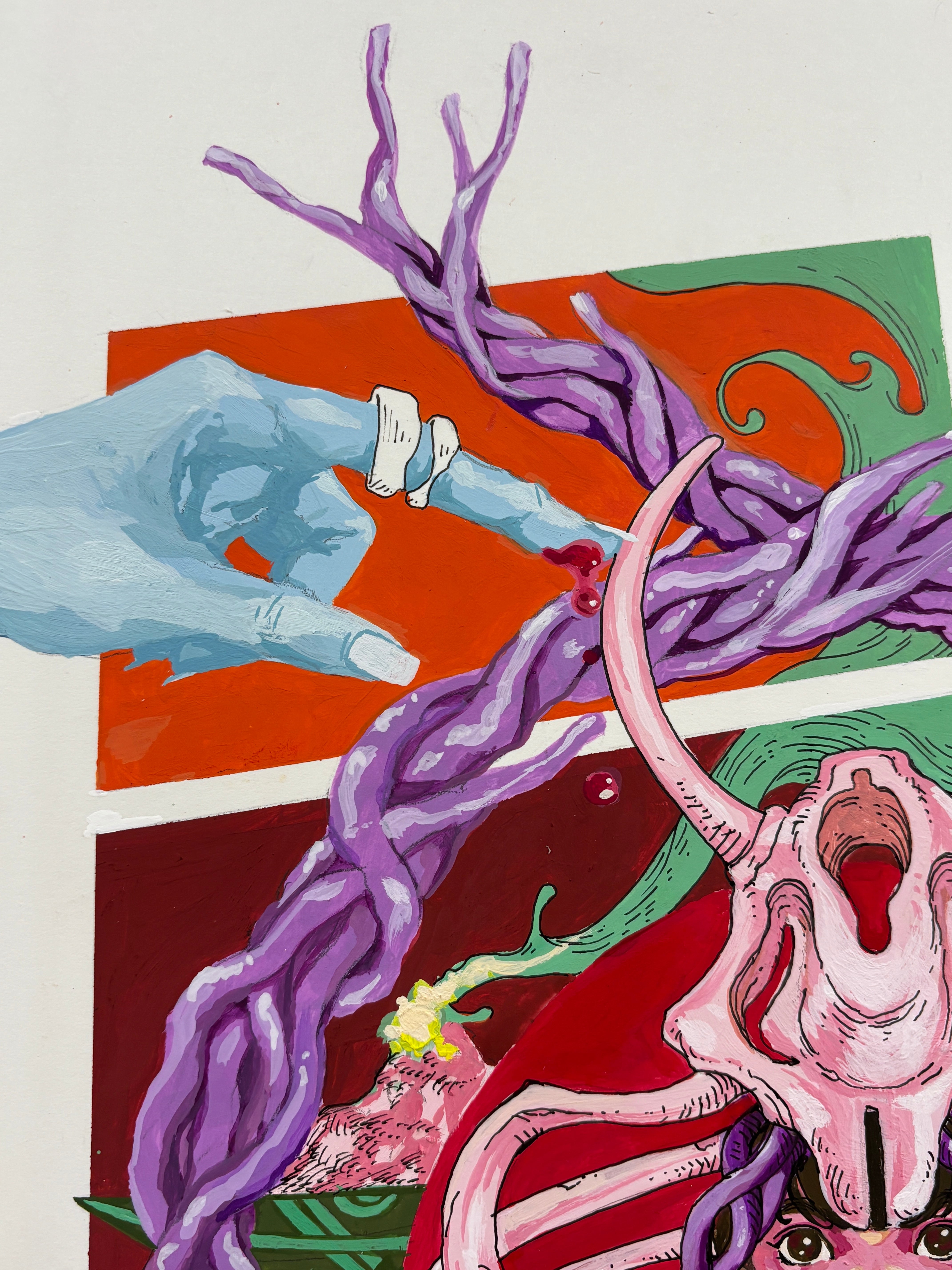 Medium: Acrylic paint, pigment ink, paper, wooden panel