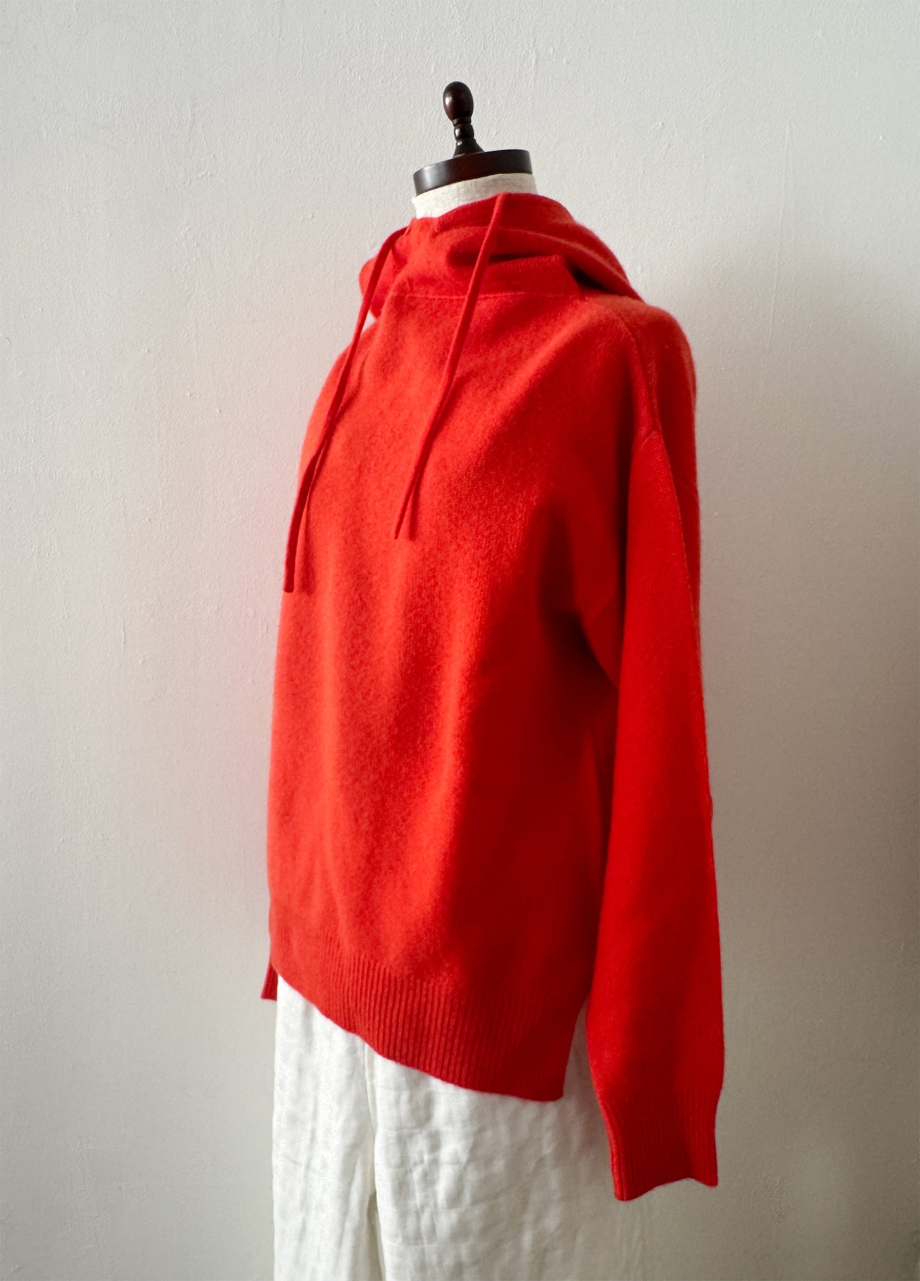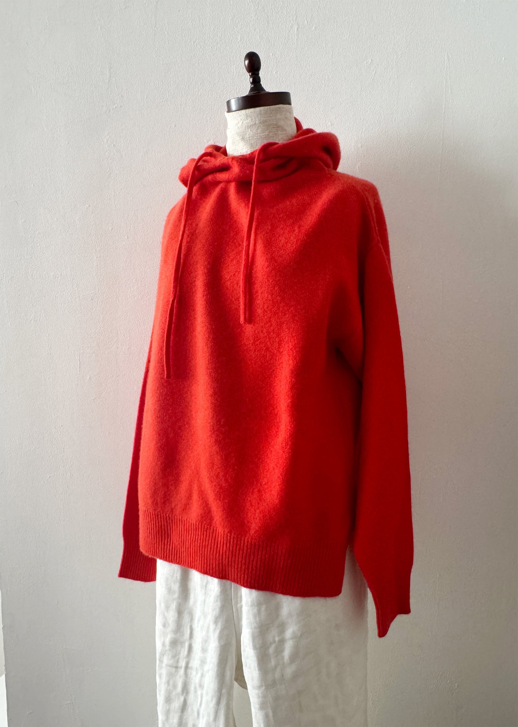 カシミアのフーディー オレンジレッド