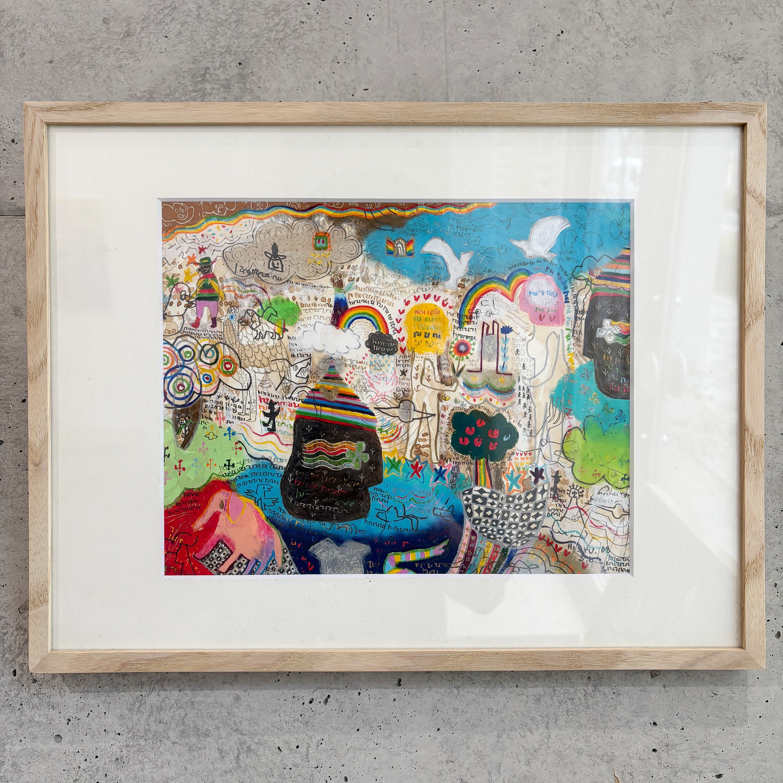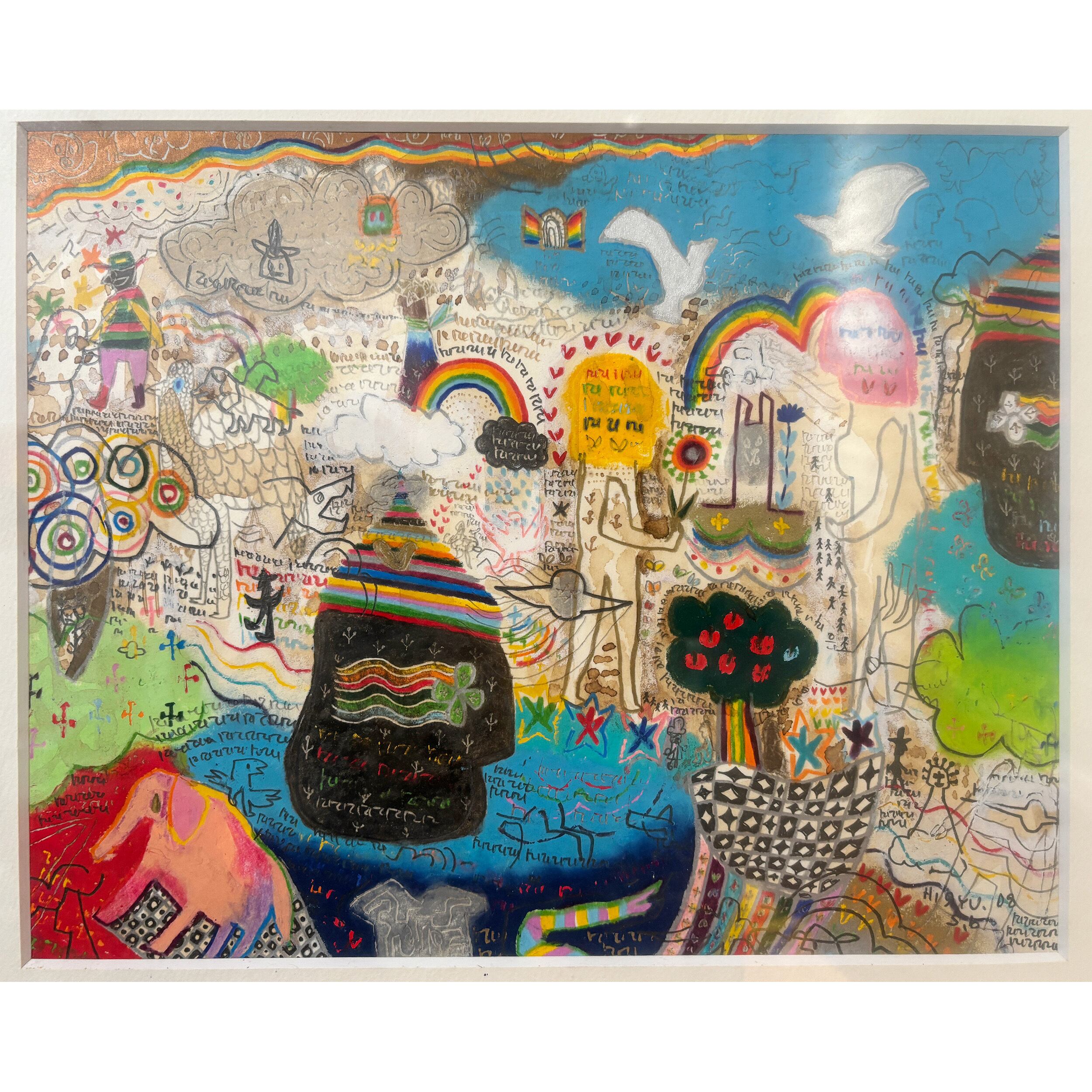 [素材] クレヨン、鉛筆、色鉛筆、ミクストメディア、木製パネル、紙