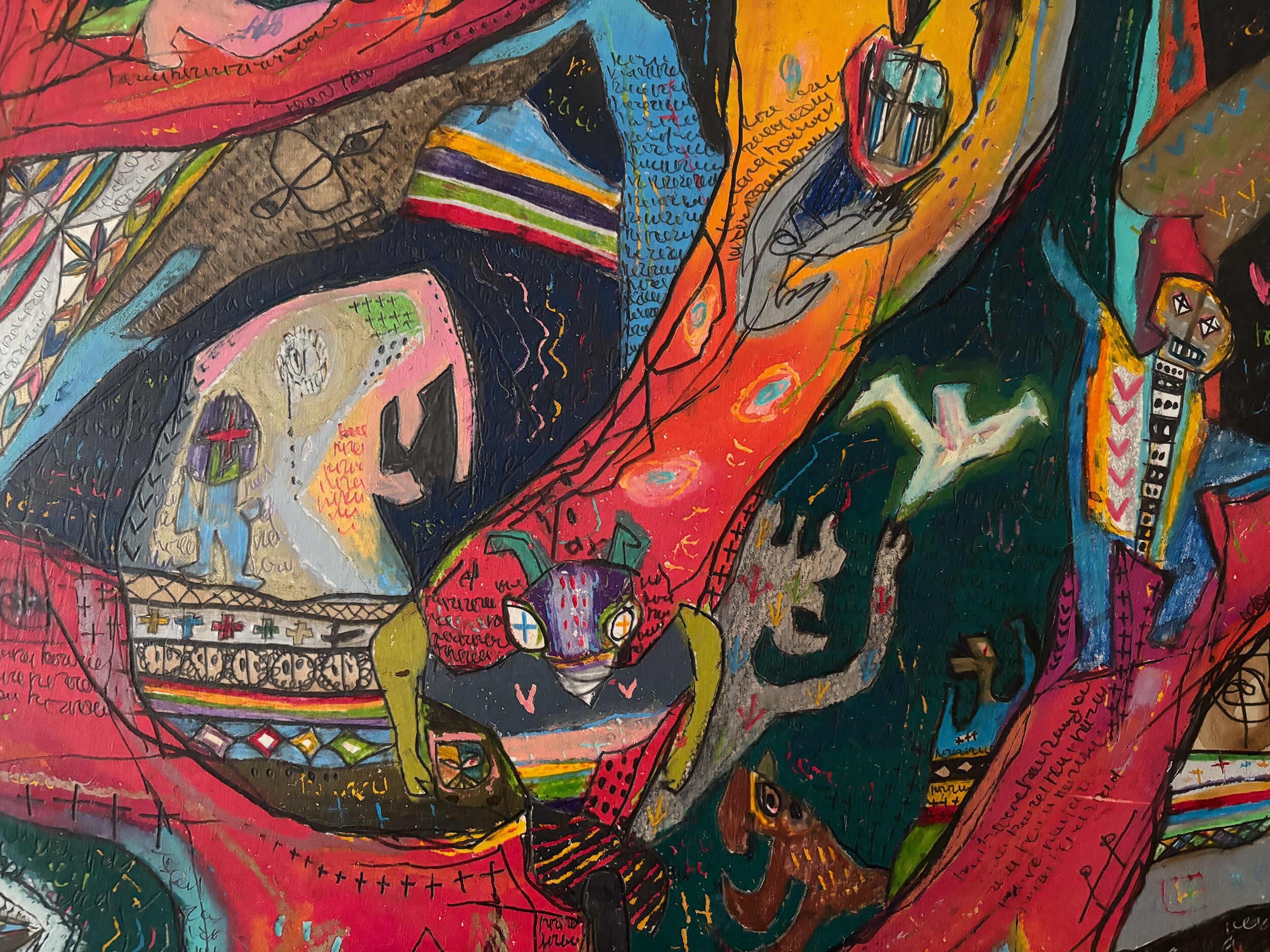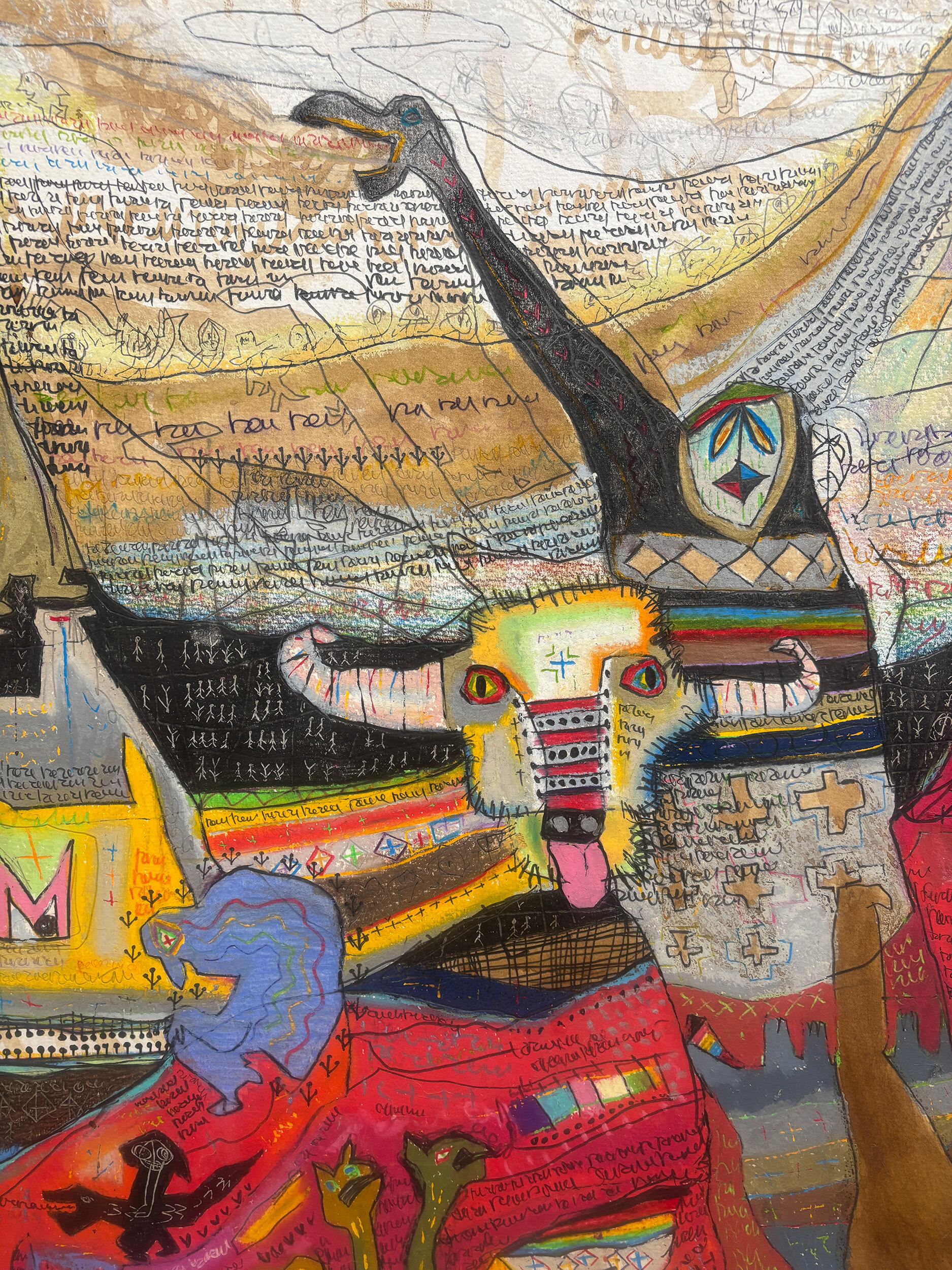 [素材] クレヨン、鉛筆、色鉛筆、ミクストメディア、木製パネル、紙