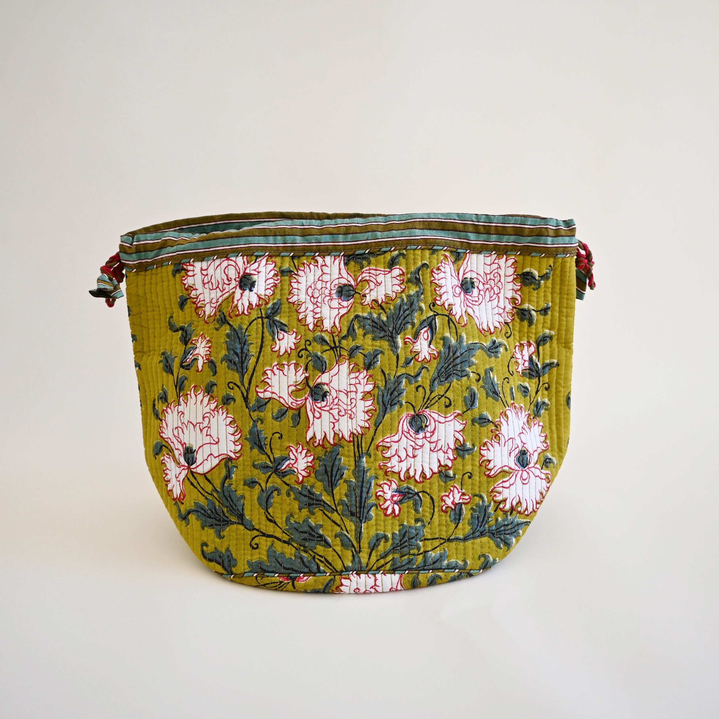ブリジット・シン ポーチ大 ヒナゲシ柄 オリーブグリーン