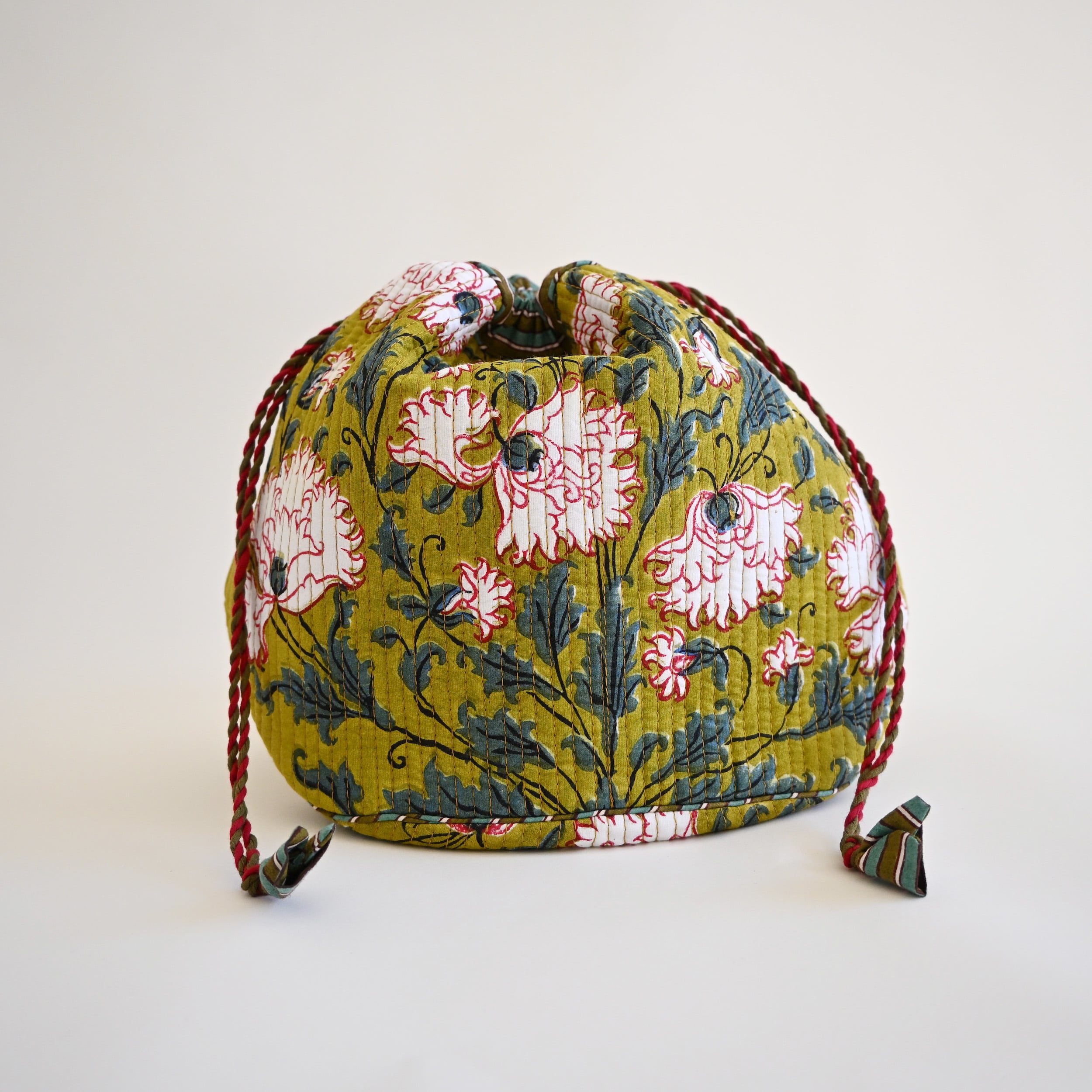 フランス人デザイナー、ブリジット・シンの優美なデザインと、腕利きのブロックプリント職人の技とのハーモニーで生まれる作品たち。