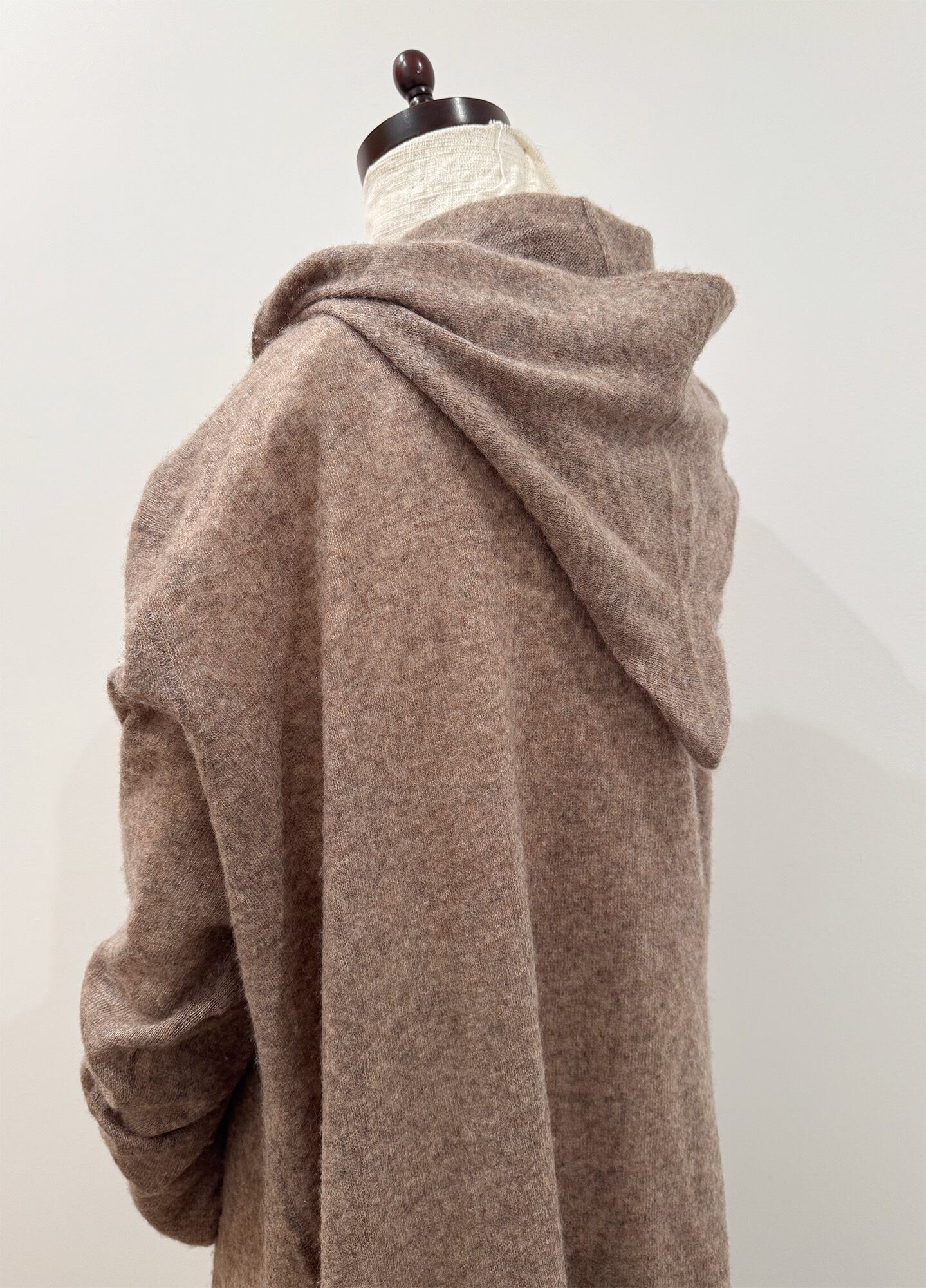 驚くほど軽やかなカシミヤ100%のフード付きカーディガン。