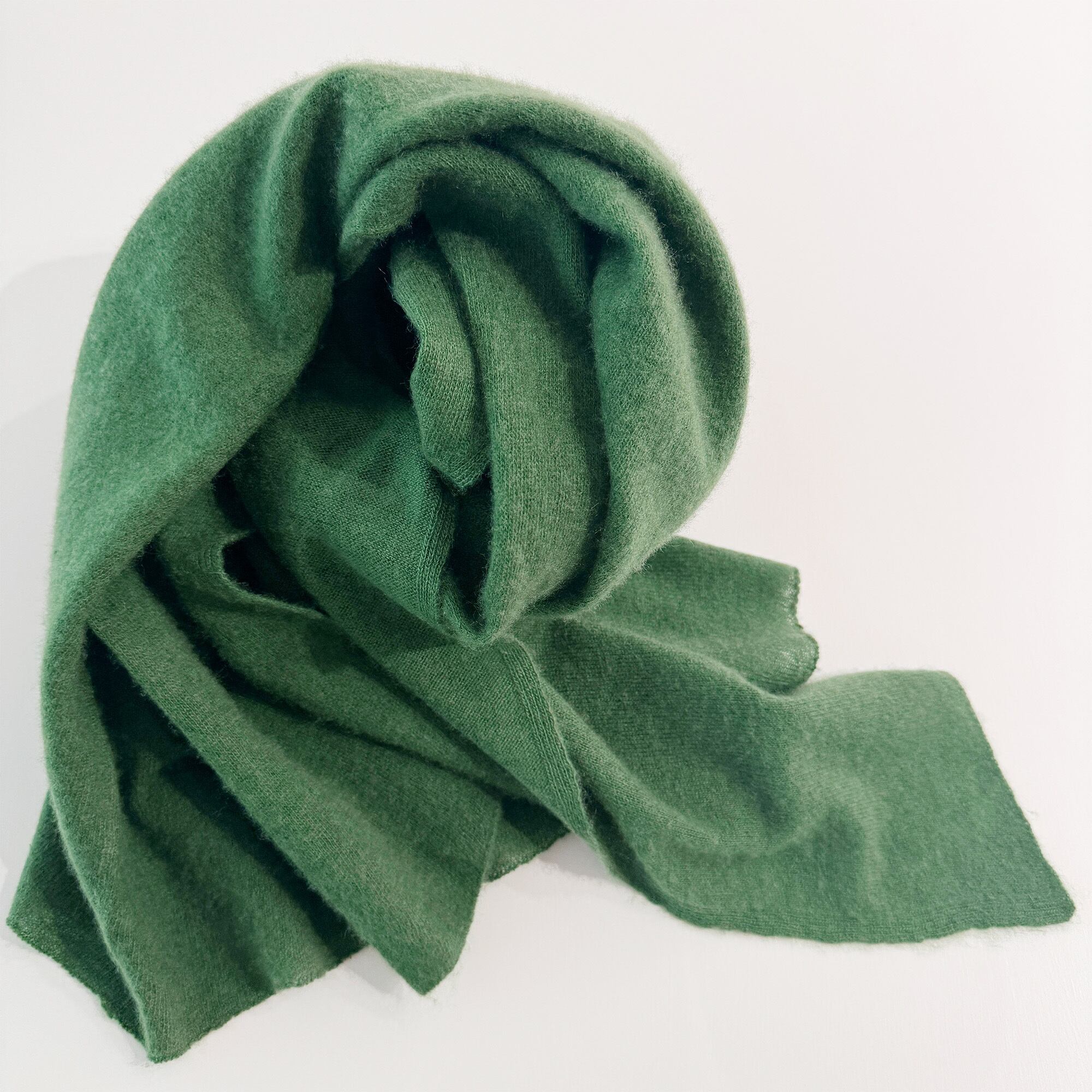 ニッティングをしたのちに少し摩擦を加えて、半フェルト処理をしているため、薄手なのに身につけるととても温かく、コートの下に一枚足したい時に重宝します。北風の日にはニットをかぶると可愛くチャーミング。