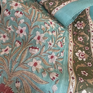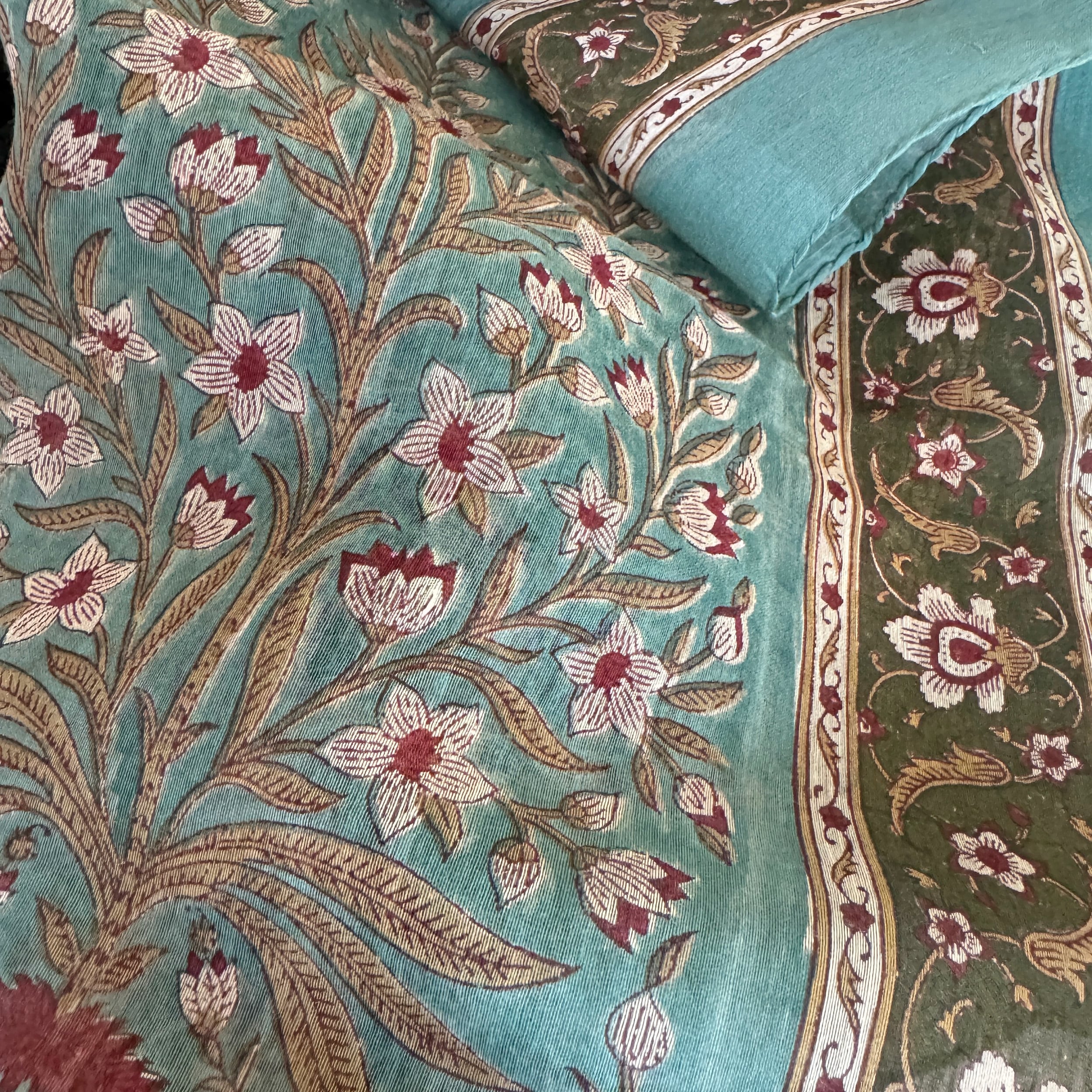 インド、ラジャスターン、ブリジット・シンの工房からやってきた美しいブロックプリントの大判スカーフです。(サイズは106cm×110cm)