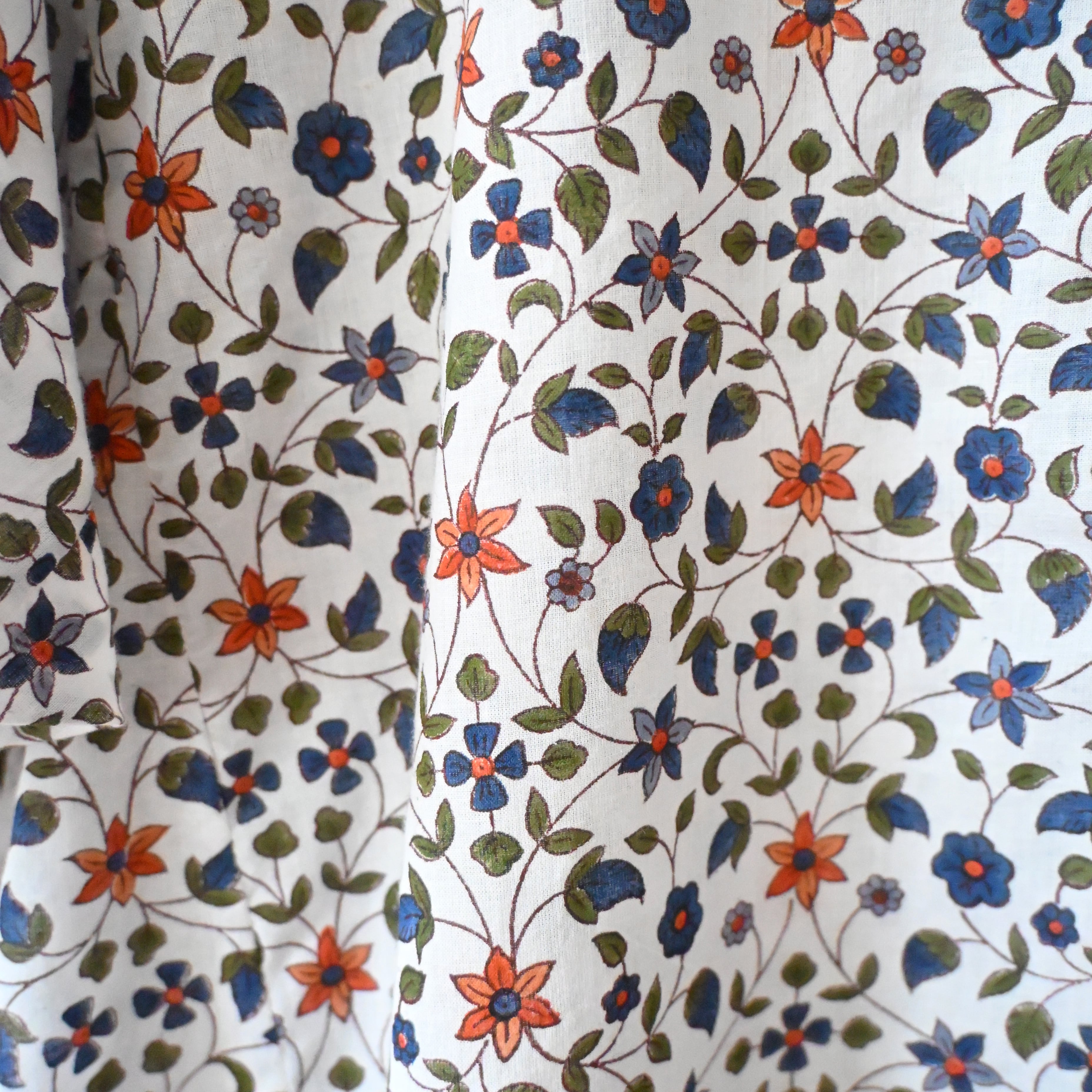 フランス人デザイナー、ブリジット・シンの優美なデザインと、腕利きのブロックプリント職人の技とのハーモニーで生まれる作品たち。
