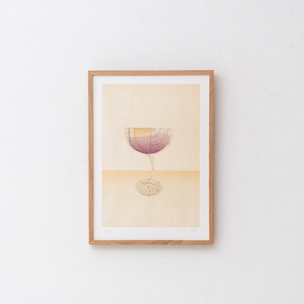 赤ワインの深い味わいや香りを感じられるよう、赤と青の微妙な色掛け合わせの調整を繰り返し、紫を表現。