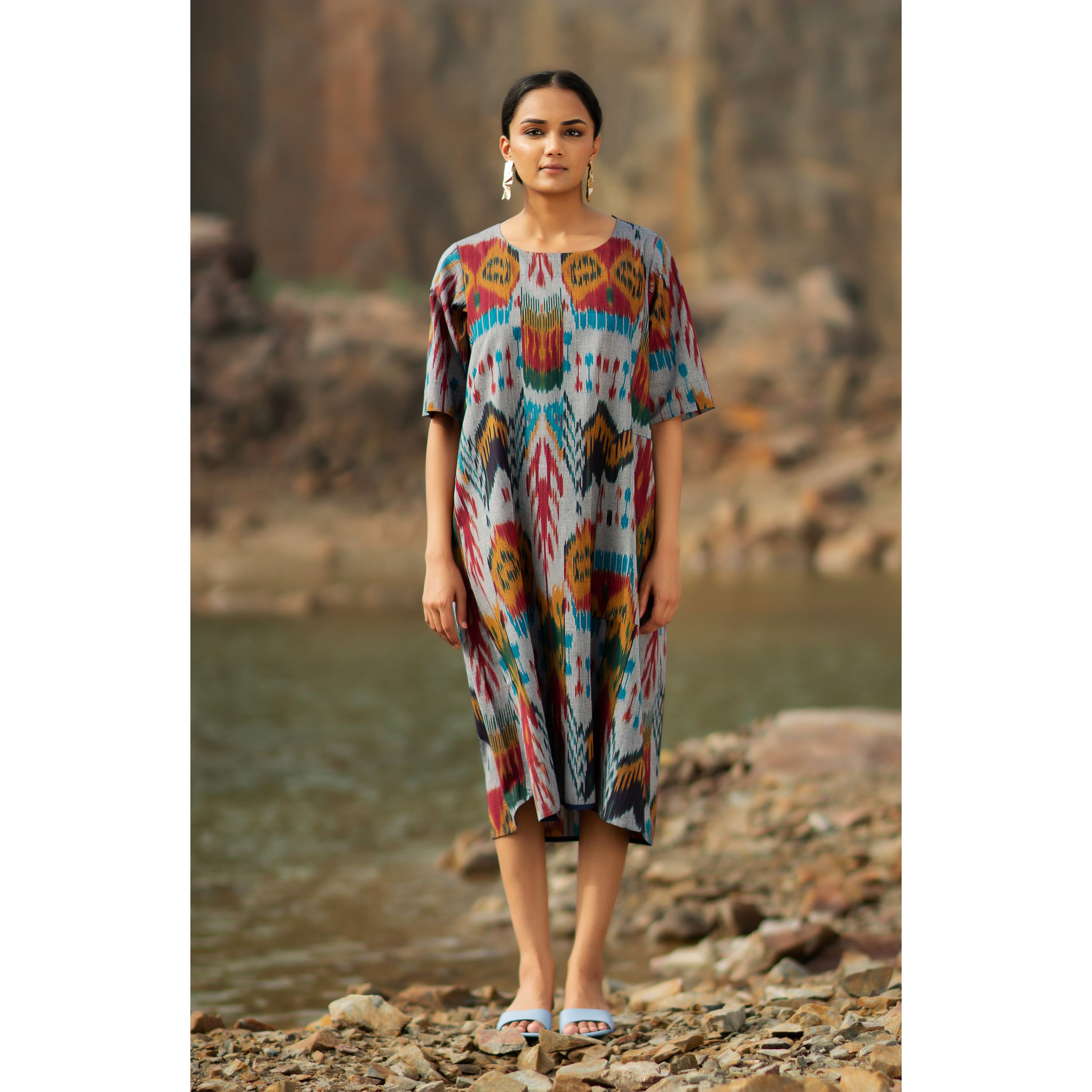 日本では着物に見られるイカット(かすり)の手法。もともとインドが発祥で、インドネシア、日本へと伝わってきました。インドのイカット紋様は、おおらかで大胆。綿100%だから決して改まりすぎることなく、ちょっと贅沢なワードローブ、おしゃれ着として親しまれています。